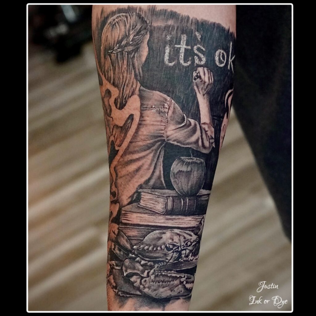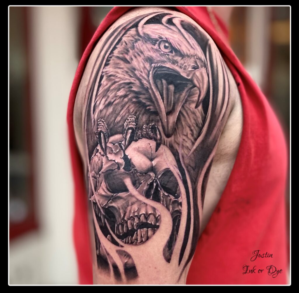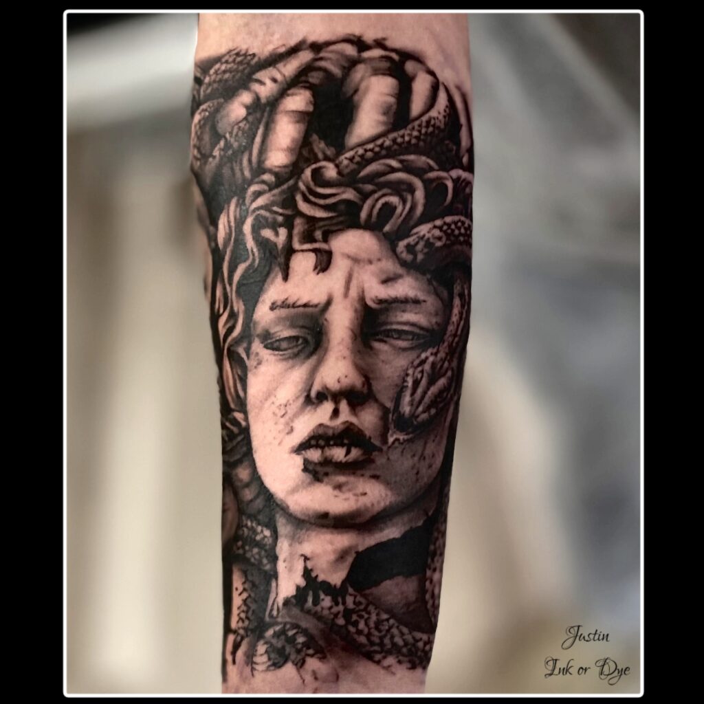 Justin’s style is rooted in Black and Grey Realism, with a focus on detail, depth, and emotion. His relentless work ethic and love for the art have led him to Ink or Dye Studio, where we are proud to have him as part of the team. Justin is excited to collaborate with clients and bring their ideas to life.