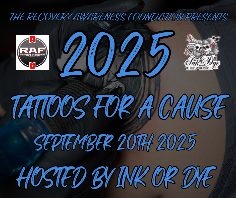 Ink or Dye Studio is excited to announce we will be hosting our third Tattoos for a Cause event in September 2025 in partnership with the Recovery Awareness Foundation!